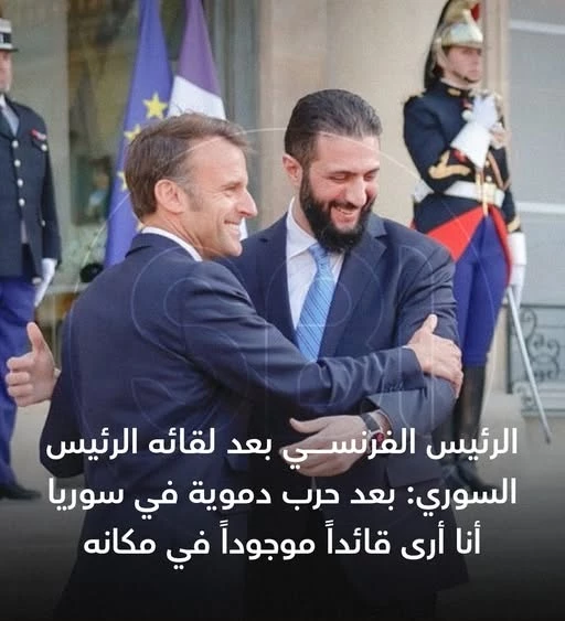 الرئيس الفرنسي إيمانويل ماكرون بعد لقائه الرئيس السوري أحمد الشرع: بعد حرب دموية في سوريا أنا أرى قائداً موجوداً في مكانه