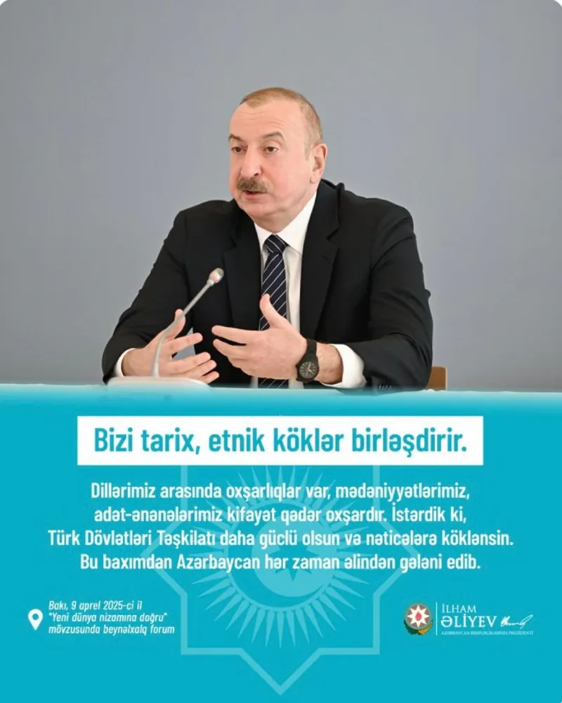 Forumun adı da rastlantı değildi – evet, “Yeni Dünya Düzenine Doğru”! Cumhurbaşkanı Aliyev’in konuşması, Azerbaycan-Türkiye-KKTC üçlüsü üzerinden Türk dünyasının bu yeni düzende nasıl ve nerede konumlanacağını gösteren bir manifestoya dönüştü. Bu aynı zamanda Türk Devletleri Teşkilatı (TDT) çerçevesinde ve daha geniş coğrafyada birlik ve dayanışma çağrısıdır.