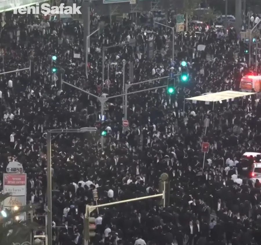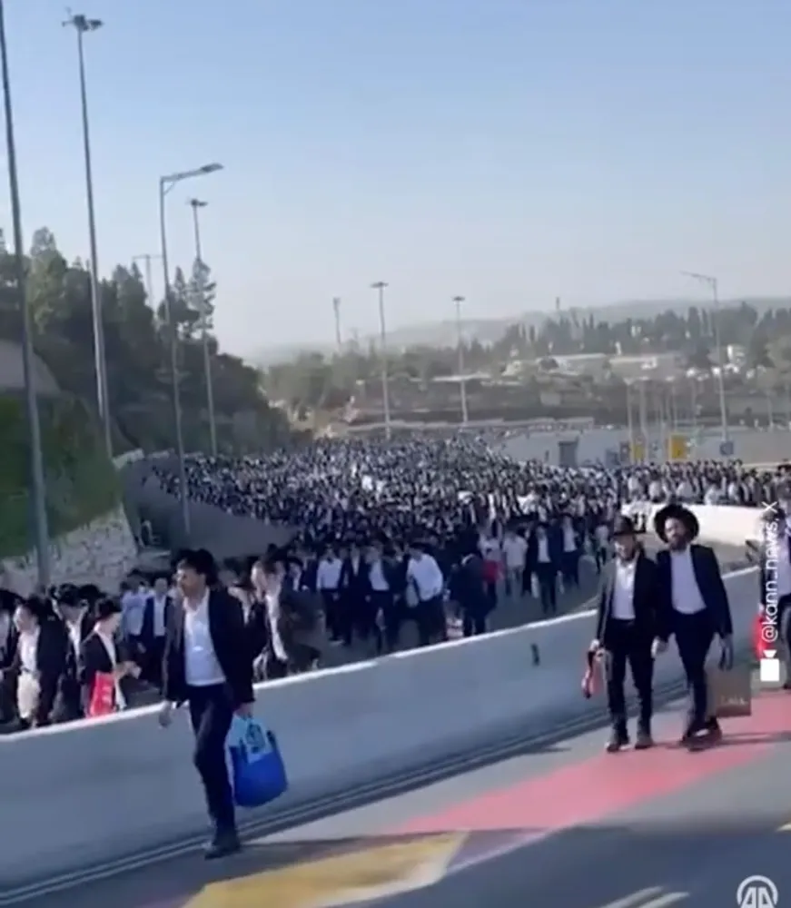 İsrail’in başkenti Kudüs’te binlerce Ultra-Ortodoks Yahudi, hükümetin zorunlu askerlik yasasında yapmayı planladığı değişiklikleri protesto etti. Göstericiler, “Tora bizim ordumuzdur” ve “Zorla askere alım Tanrı’ya karşı gelmektir” sloganları attı.
