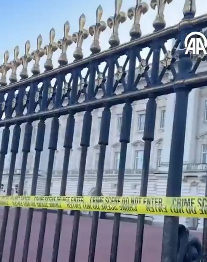 Londra’daki Buckingham Sarayı önünde toplanan grup, sarayın girişine “Suç mahallidir, girilmez” yazılı şerit çekerek tepkilerini sembolik bir eylemle ortaya koydu.