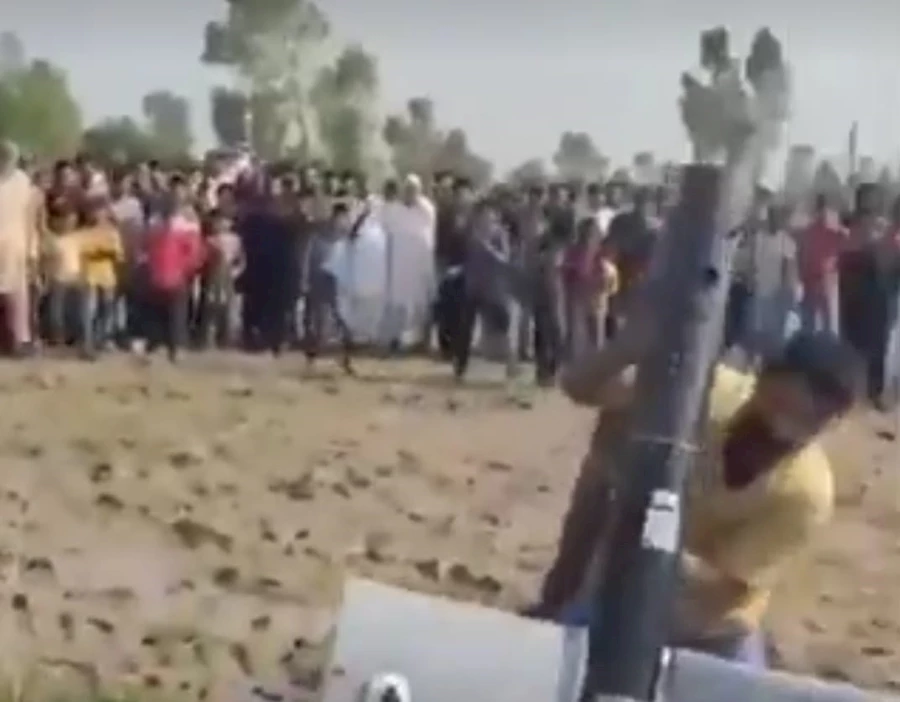 Pakistan halkı, hava savunma sistemleri tarafından düşürülen Hindistan’a ait İHA’ya saldırdı.