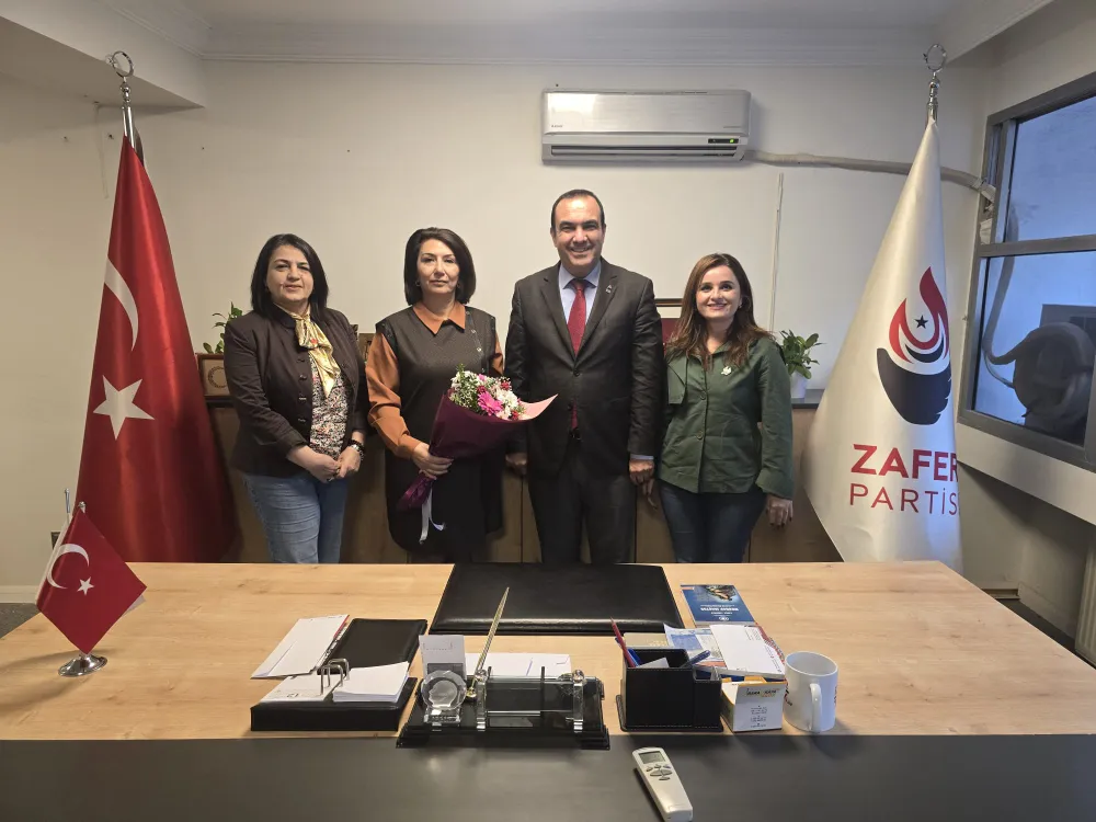 Dün, gazeteci Nigar Ögeday ve oyuncu Roza İbadova Kocamaz, Cevahir Ahmediva’yı ziyaret ederek yeni görevinden dolayı tebriklerini iletti. Ziyaret kapsamında heyet, Zafer Partisi İzmir İl Başkanlığı’nda İl Başkanı M. Sinan Bezircilioğlu tarafından kabul edildi.