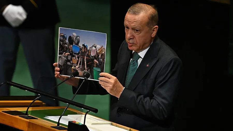 Erdoğan, açlık krizine de dikkat çekerek “146’sı çocuk 428 kişi açlıktan hayatını kaybetti. İnsanlar açlık silahıyla öldürülüyor. 21. yüzyılda bu tablo insanlığın dip noktasıdır” dedi.