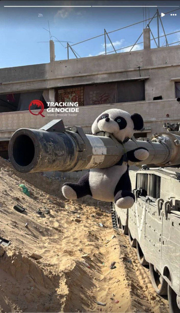 Öte yandan sosyal medyada paylaşılan bir görüntü büyük yankı uyandırdı. İsrailli bir tank komutanının, Filistinli bir çocuğa ait oyuncak bebeği tankın namlusuna takarak poz vermesi uluslararası insan hakları örgütleri tarafından “aşağılayıcı ve vicdansız bir provokasyon” olarak nitelendirildi.