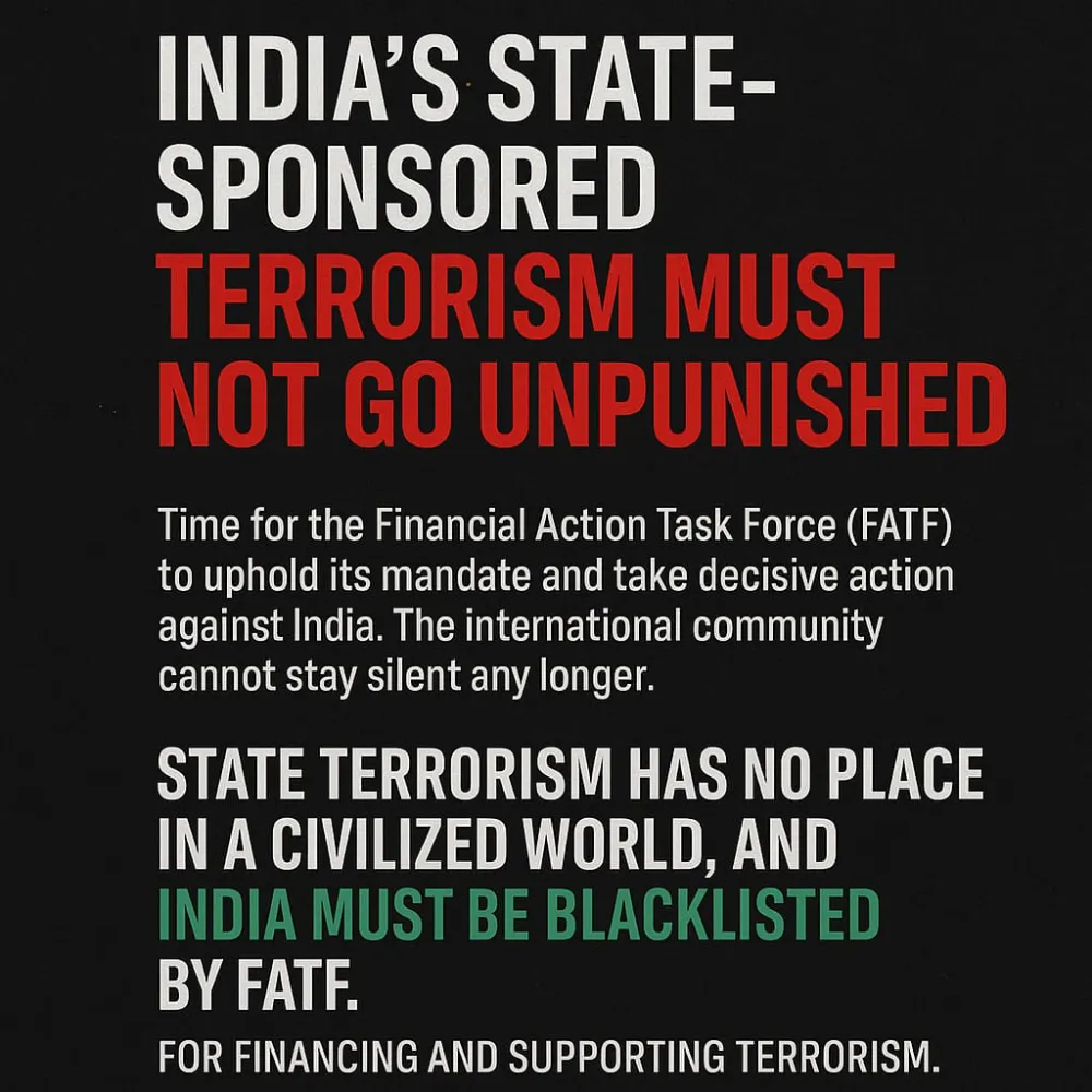 Uluslararası topluma çağrımız nettir: Şeffaflık ve hesap verebilirlik talep edilmelidir. Devlet destekli terörizme medenî bir dünyada yer yoktur. Hindistan, terörü desteklediği ve finanse ettiği için FATF tarafından kara listeye alınmalı, adalet yerini bulmalıdır.
