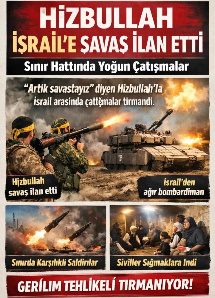 Lübnan merkezli silahlı yapı Hizbullah, yaptığı yazılı ve görüntülü açıklamada İsrail’e karşı resmen savaş başlattıklarını duyurdu. Açıklamada, “Artık savaştayız” ifadeleri kullanılırken, İsrail hedeflerine yönelik saldırıların artarak süreceği belirtildi.