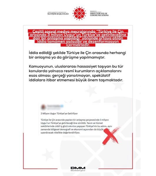 #İletişimBaşkanlığı #Uygur #Türkiye #Dezenformasyon #Asılsızİddia #Kamuoyu #ResmiAçıklama #Çin #Göç #DışPolitika