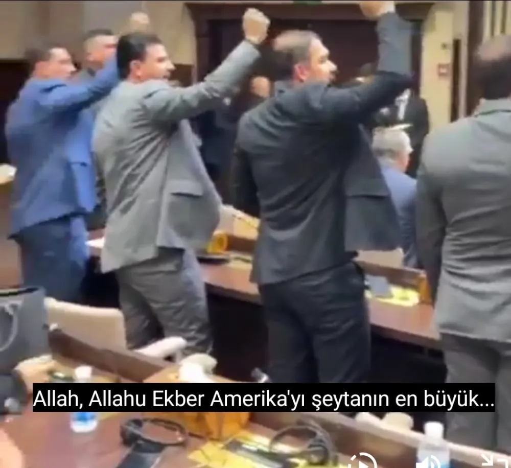 Irak Parlamentosu’nda gerçekleştirilen oturum sırasında ABD ve İsrail karşıtı sloganlar atıldı. Bağdat’ta bulunan parlamento binasında gerçekleşen oturumda bazı milletvekilleri ve salondaki katılımcılar, ABD ve İsrail politikalarını protesto eden ifadeler kullandı.