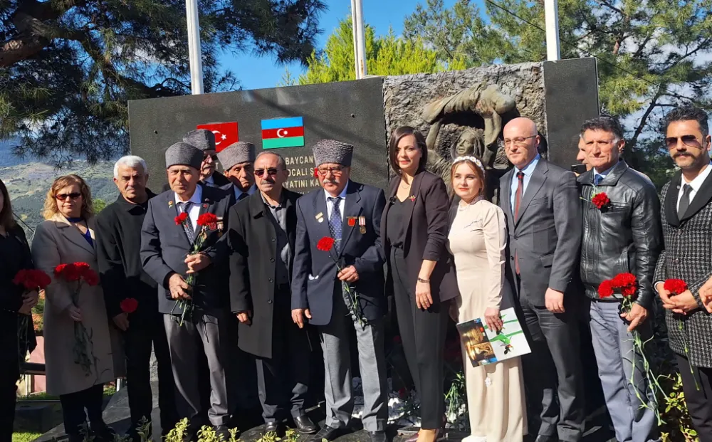 Karabağlar’daki Hocalı Anıtı önünde saat 11.00’de başlayan törene sivil toplum kuruluşları temsilcileri, muhtarlar, gaziler ve çok sayıda vatandaş katıldı. Tören, şehitlerin manevi huzurunda yapılan saygı duruşu ile başladı. Ardından Türkiye ve Azerbaycan milli marşları okundu.