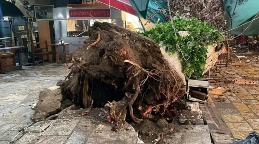 Tarihi Kemeraltı Çarşısı’nda, Hisarönü Camii önündeki meydanda bulunan asırlık çınar ağacı kökünden sökülerek devrildi. Günün her saatinde yoğun insan trafiğinin bulunduğu alanda yaşanan olayda şans eseri yaralanan olmadı.