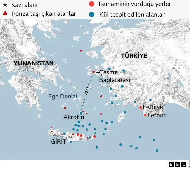 Yiğitbaşıoğlu, buna Thera volkanından çıkan küllerin yol açtığını söylüyor.