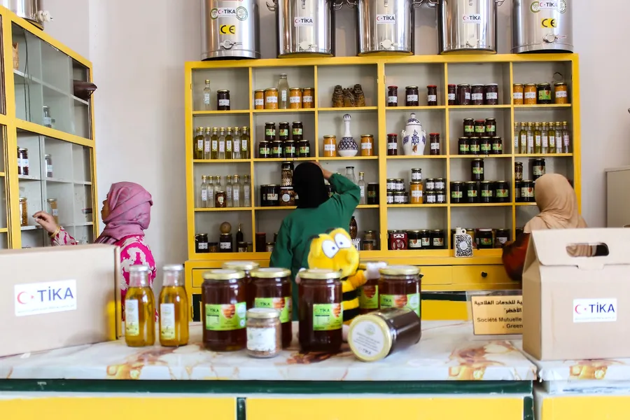 Tunus’ta TİKA desteğiyle kurulan paketleme ve satış birimi, doğallığı tescillenmiş yerli bal ürünlerinin pazara sunulmasını sağladı. Projede kadınlar, gençler ve özel gereksinimli bireyler üretime katılırken, arı kovanları, üretim malzemeleri ve paketleme ekipmanları yerel kooperatif üyelerine teslim edildi.