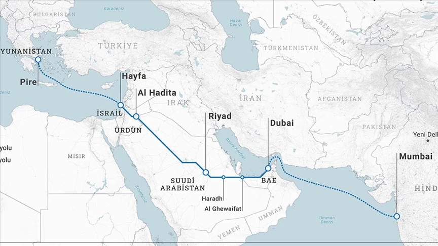 Alternatif olarak belirlenen yollardan en önemlisi ise, aşağıdaki haritada da görülebileceği gibi Çin ve Türk Dünyası'nın beyni Türkiye'yi devre dışı bırakan, Hindistan-Orta Doğu-Avrupa Ekonomik Koridoru idi.