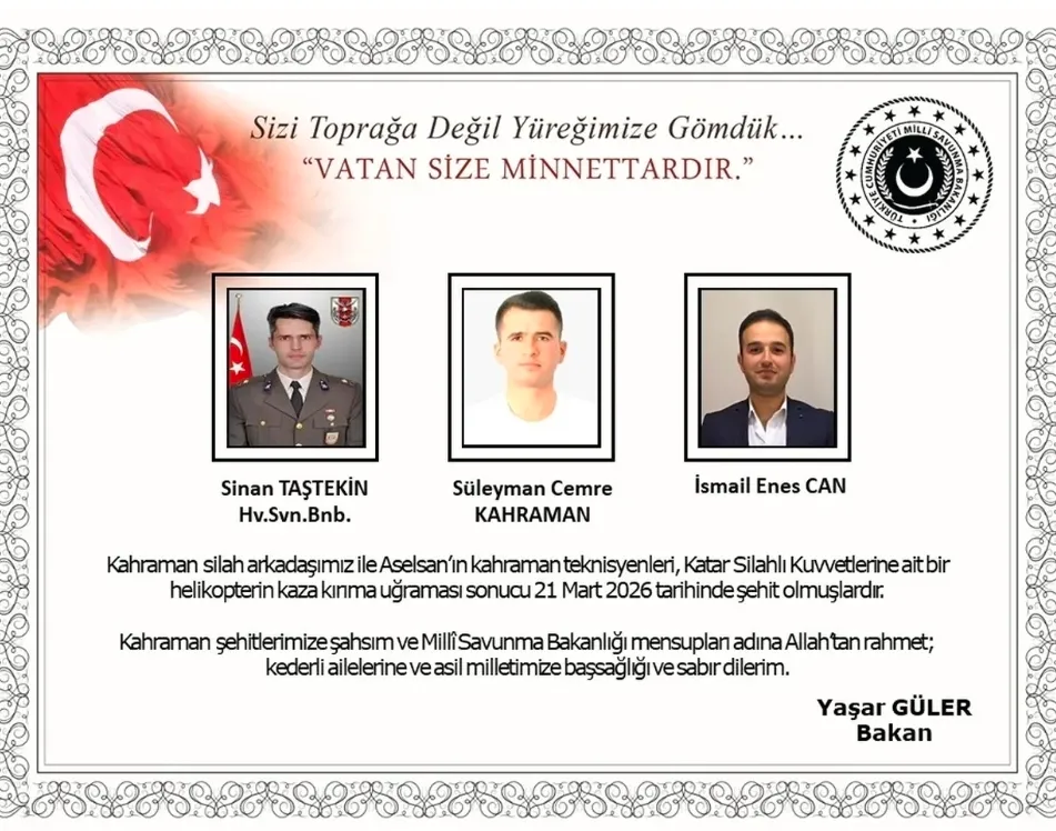 Katar’da acı kaza: 3 Türk personel şehit oldu Eğitim uçuşunda faciaya dönüşen teknik arıza: 7 kişi hayatını kaybetti