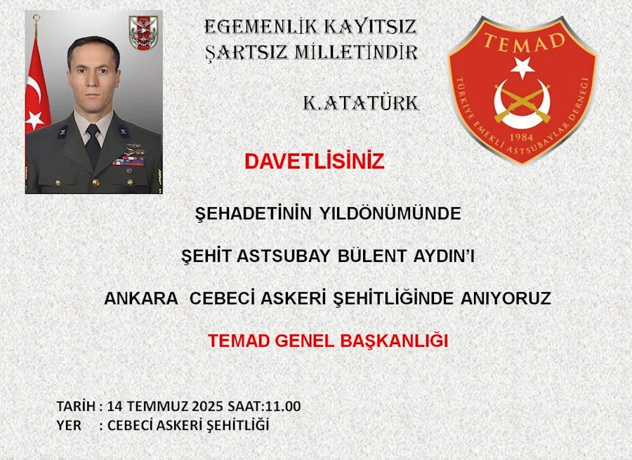 Sessiz bir şehitlik, rüzgarla dalgalanan bayraklar ve dimdik duran yürekler vardı Cebeci Askeri Şehitliği’nde. Her birimizin kalbinde aynı his: hüzün, minnet ve sonsuz saygı. Çünkü o toprağın altında, 15 Temmuz gecesi milletin kaderine yön veren ilk kurşunla şehadete yürüyen kahraman yatıyordu — Astsubay Kıdemli Başçavuş Bülent Aydın.