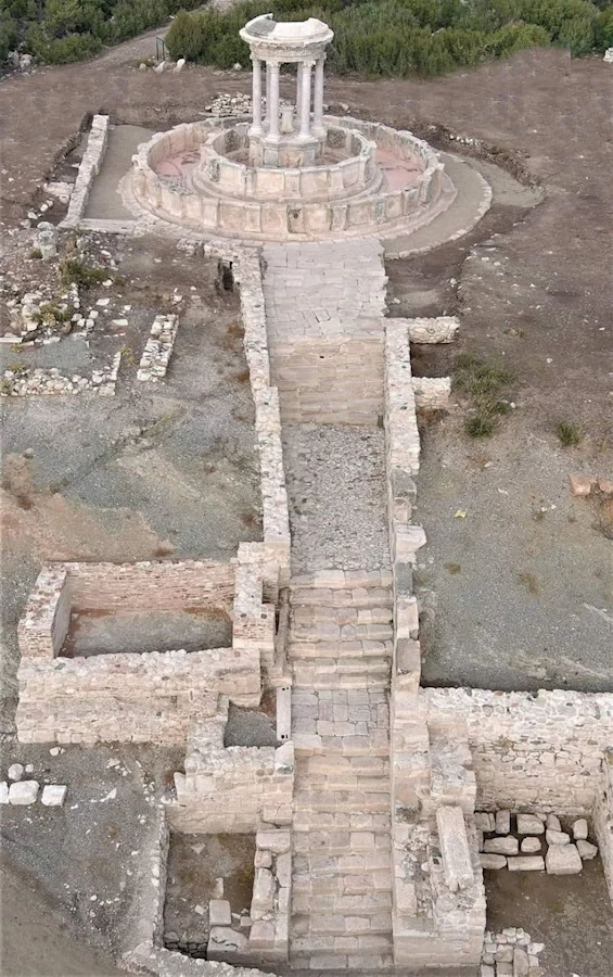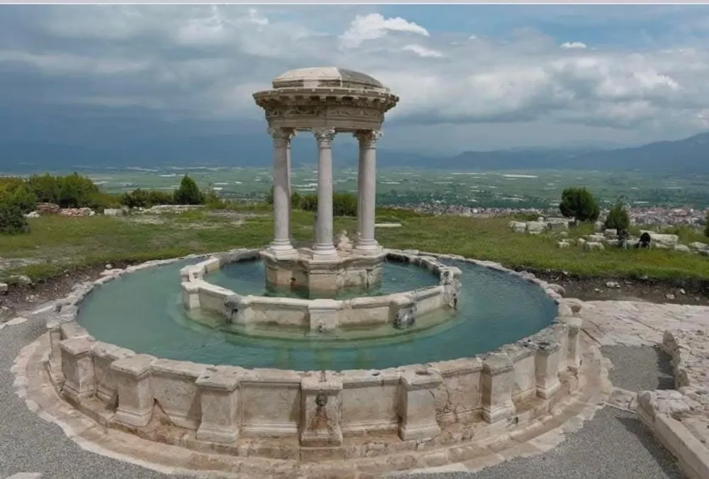 Dünyada pek eşi olmayan ikinci eserde yeni restore edilen dairesl çeşme yapısı. Aslanlardan gelen sularla şenlenen, serinleyen Kibyra antik kentinde izlemeye doyamayacağınız bir güzellik oluşmuş. Orjinal parçaları kullanılarak restore edilen çeşmeyi görmek için bile Kibyraya gitmeye değer.
