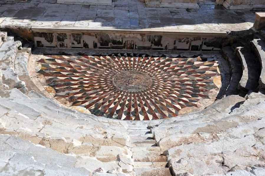 Medusa mozaiği, "Opus Sectile" tekniğiyle renkli mermerlerden inşa edildi ve gercek bir şaheser.