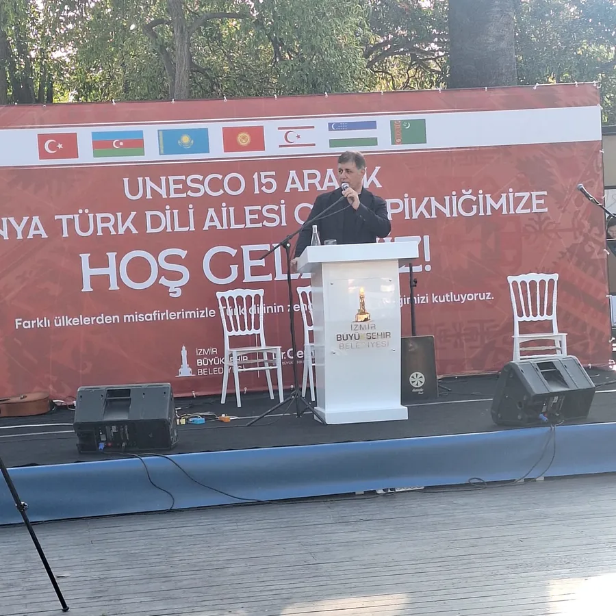 İzmir Büyükşehir Belediyesi, 15 Aralık Dünya Türk Dili Ailesi Günü kapsamında anlamlı bir etkinliğe ev sahipliği yaptı. İzmir Fuarı içerisinde yer alan Mogambo Kültürpark’ta düzenlenen programa, İzmir Büyükşehir Belediye Başkanı Dr. Cemil Tugay, Kazakistan Başkonsolosu, siyasetçiler ve çok sayıda sivil toplum kuruluşu temsilcisi katıldı.