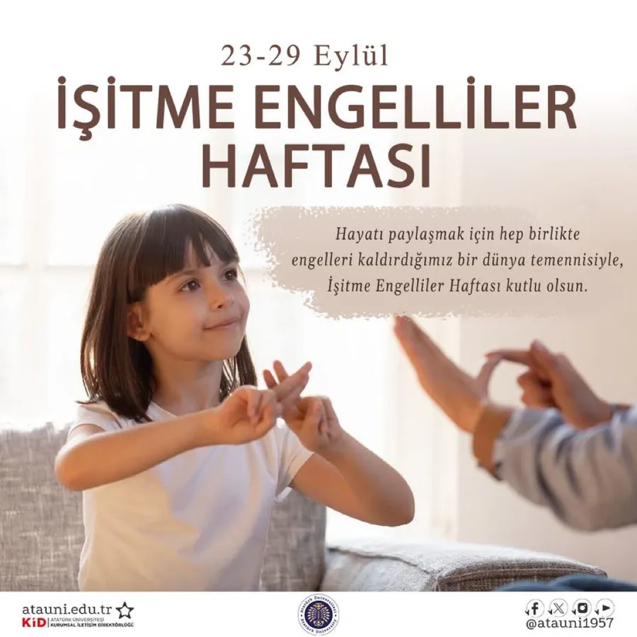 23-29 Eylül tarihleri, işitme yetersizliği olan bireylerin karşılaştıkları zorluklara dikkat çekmek, haklarına ve ihtiyaçlarına yönelik bilinci artırmak, toplumsal farkındalığı güçlendirmek amacıyla "Uluslararası İşitme Engelliler Haftası" olarak anılmaktadır.