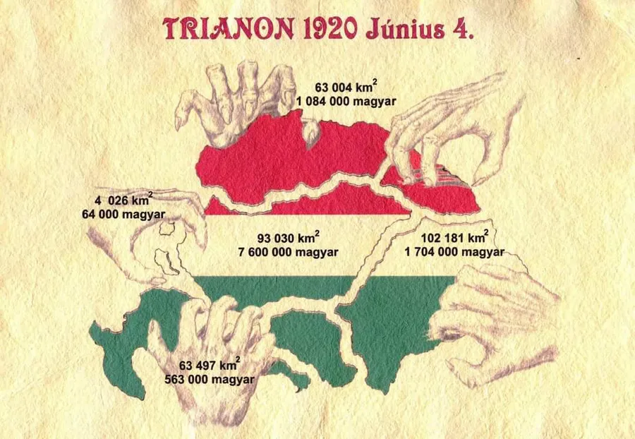 Avusturya- Macaristan İmparatorluğunda ki topraklarının 2/3'ü Macaristan'dan zorla alınmıştır.